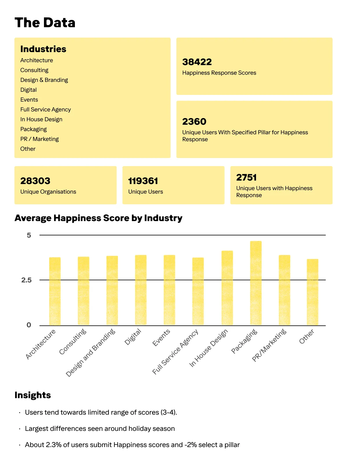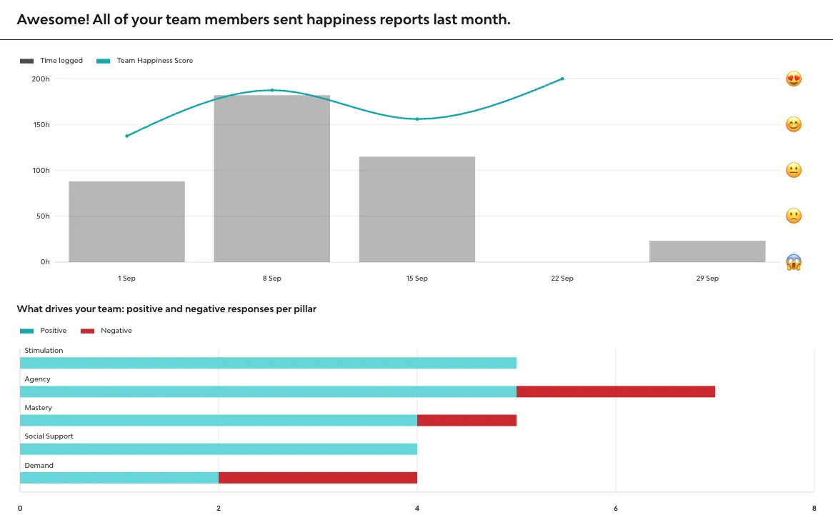 The traditional either/or mentality that dictates financial success and employee wellbeing as mutually exclusive is simply no longer fit for purpose. Leveraging our existing project management data, happiness coach responses, data and behavioural science specialists along with soon to be released features, we believe we are uniquely positioned and hugely excited about the prospect of guiding teams towards a healthier, happier business and industry.